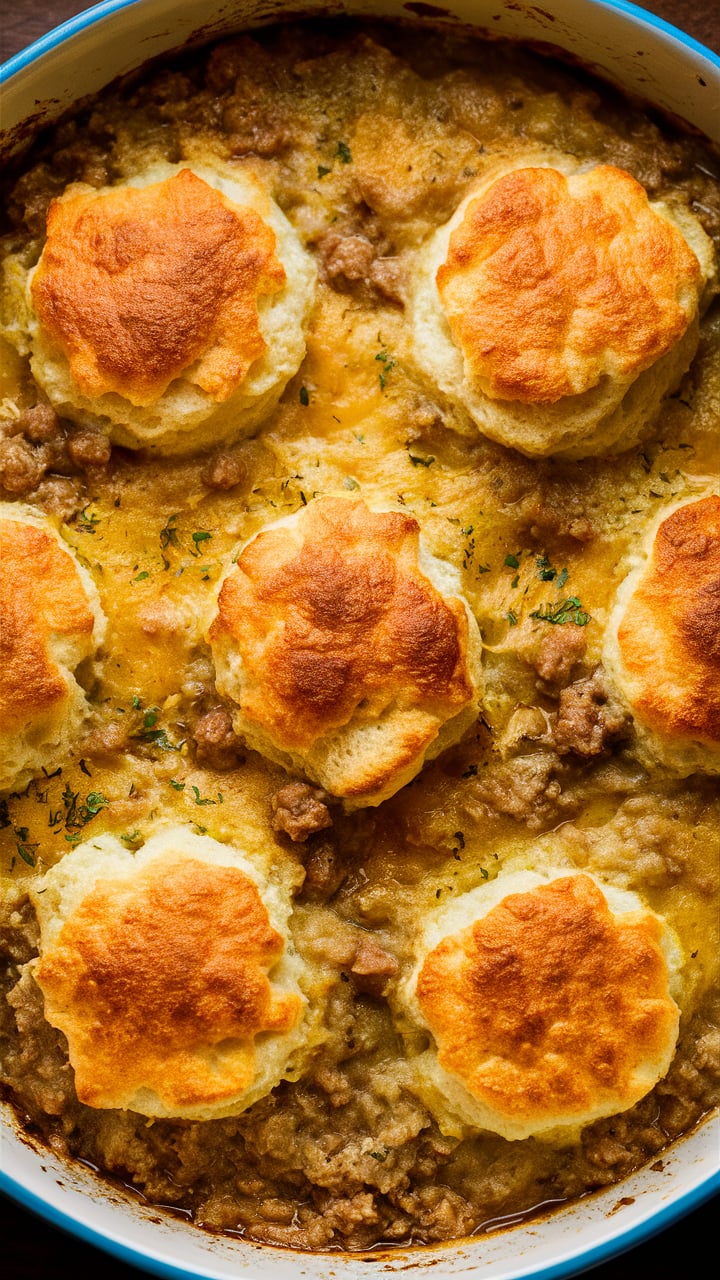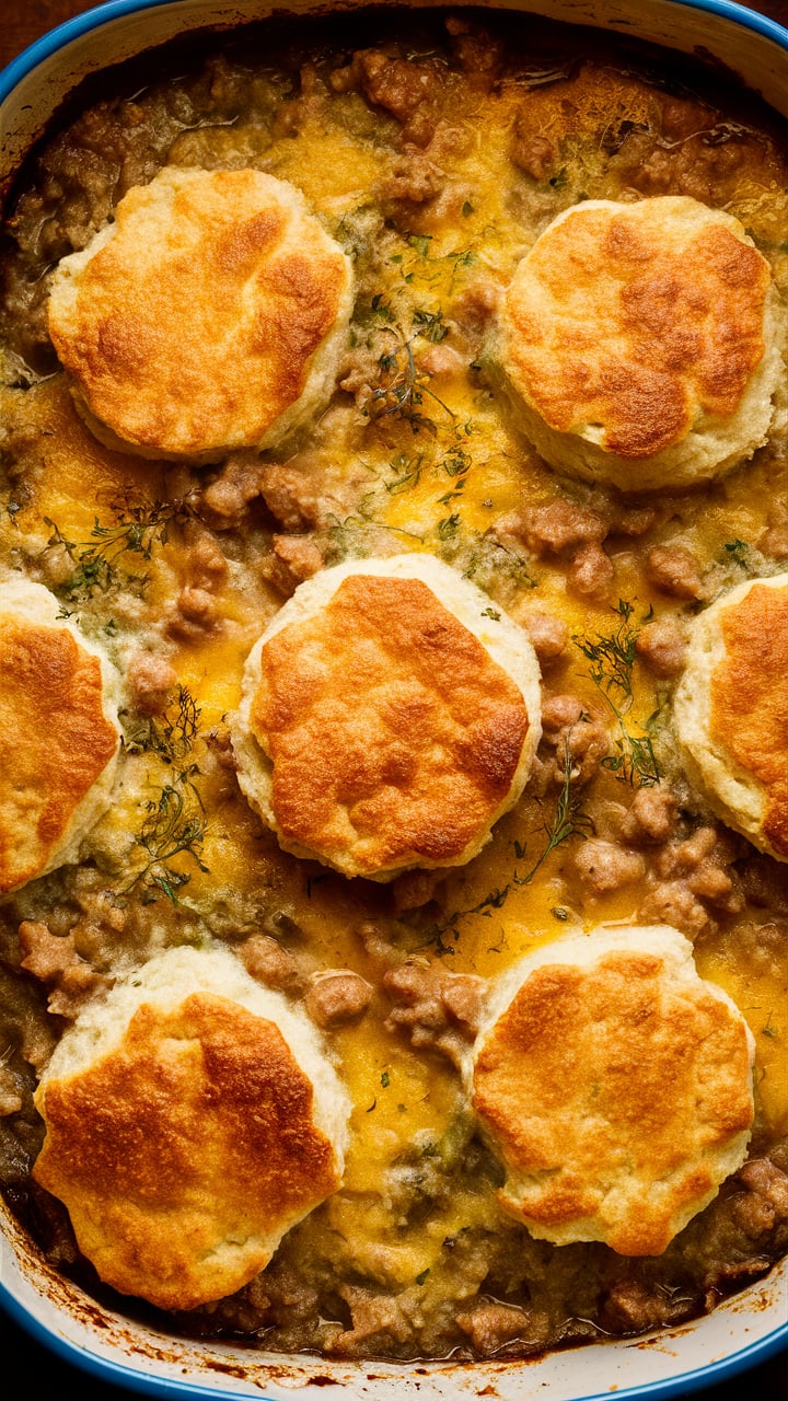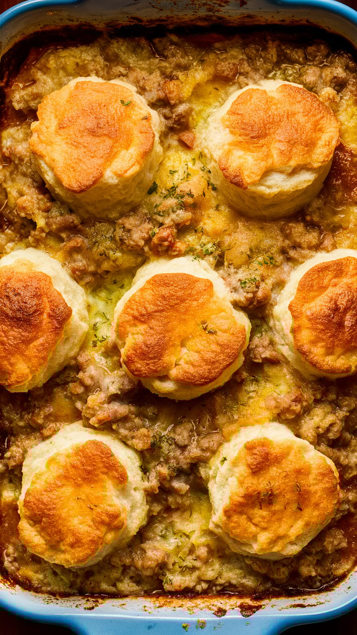 This version takes that same beloved concept and gives it a modern twist—layering creamy sausage gravy over crisp hashbrowns and fluffy biscuits. The result? A one-dish wonder that’s golden on top, creamy in the middle, and packed with flavor.