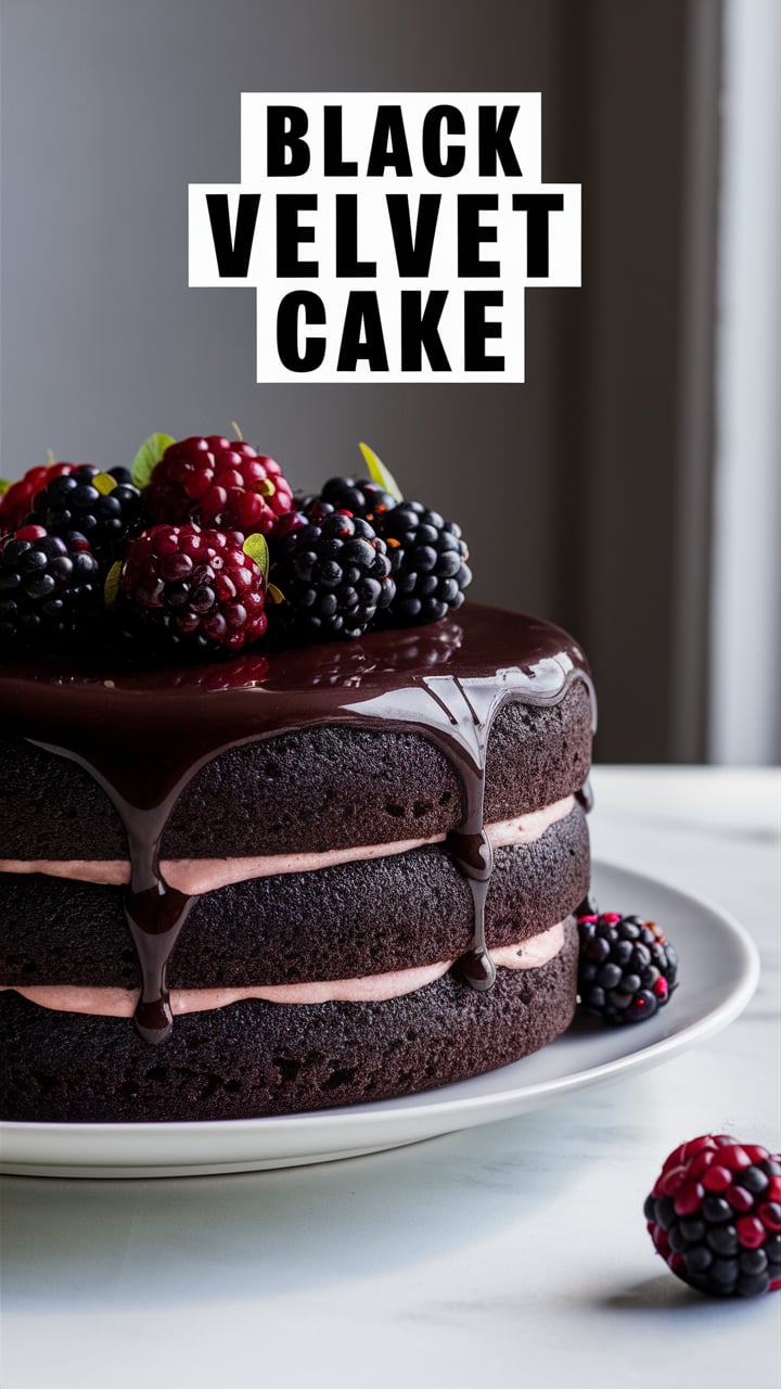 Imagine a cake so dark it seems to absorb light — a creation where deep cocoa meets the smooth, tangy richness of buttermilk and cream cheese frosting. Black Velvet Cake is the sophisticated sibling of the famous Red Velvet. It’s mysterious, elegant, and unapologetically indulgent.