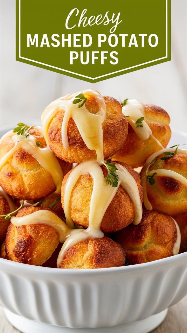 Turn leftover mashed potatoes into golden, cheesy puffs of perfection! These crispy, creamy Cheesy Mashed Potato Puffs are quick, easy, and loaded with flavor — the ultimate party snack or comfort food treat.