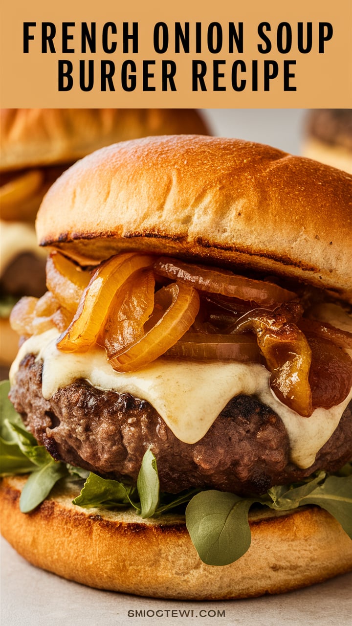 Discover how to make the ultimate French Onion Soup Burger — juicy beef patties topped with caramelized onions, melted Gruyère, and the deep, savory essence of French onion soup. A true gourmet comfort food experience.
