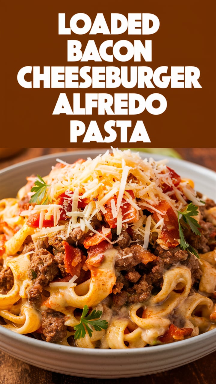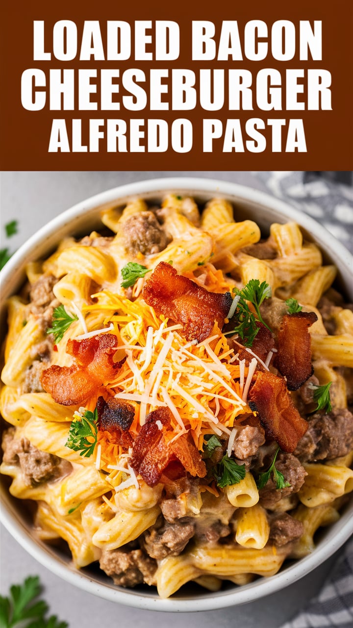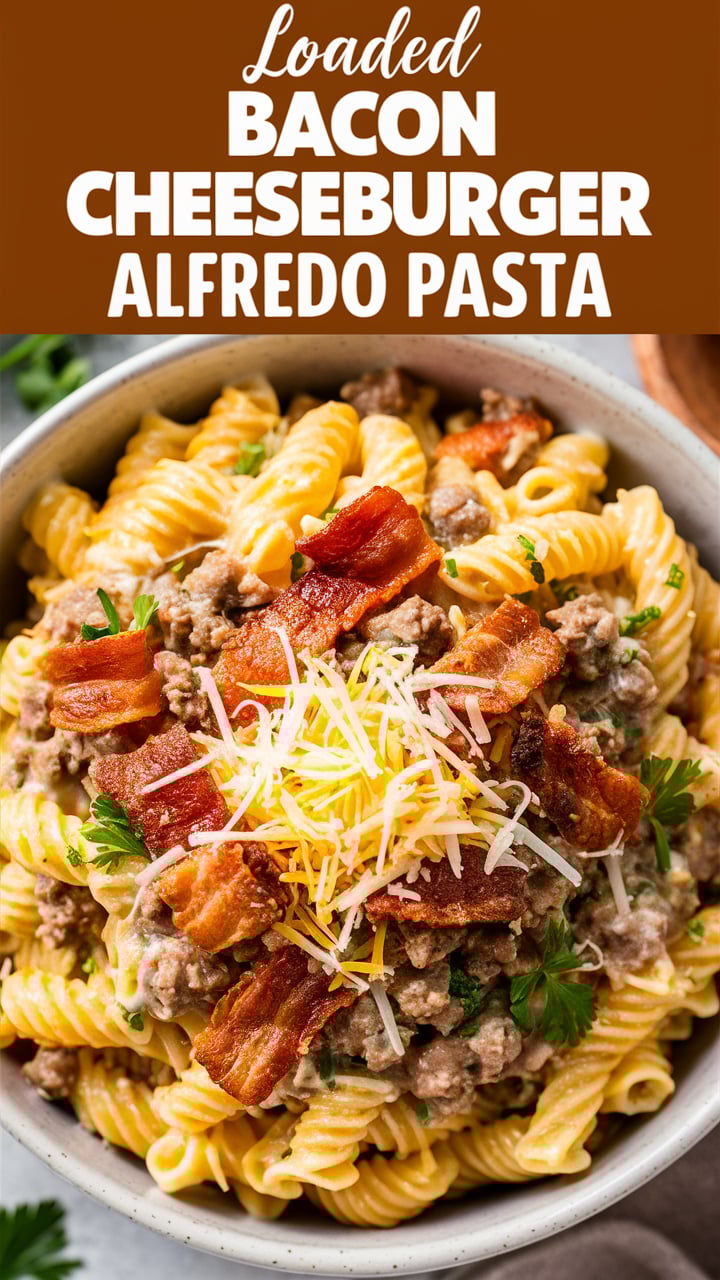Loaded Bacon Cheeseburger Alfredo Pasta is the ultimate comfort food fusion—creamy, cheesy, smoky, and hearty. It’s indulgent enough for weekends yet simple enough for busy weeknights. Once you try it, it’ll quickly become a family favorite.