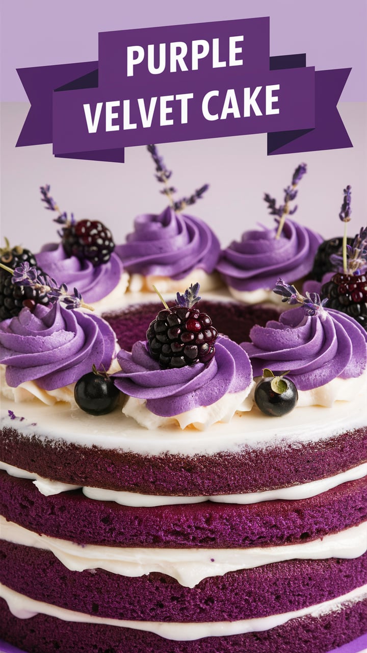 | Purple Velvet Cupcakes | Perfect for parties; bake 18–20 minutes in cupcake liners. |
