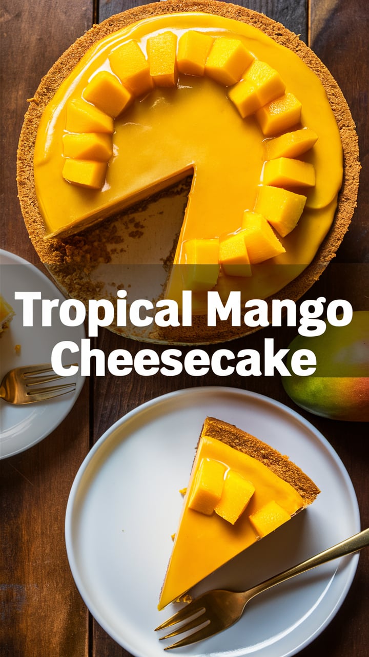 This Tropical Mango Cheesecake is more than dessert — it’s an experience. Each bite is a harmony of creamy, tangy, and fruity layers that transport you to a sun-kissed island. Whether baked or no-bake, vegan or classic, it’s the perfect centerpiece for any gathering.