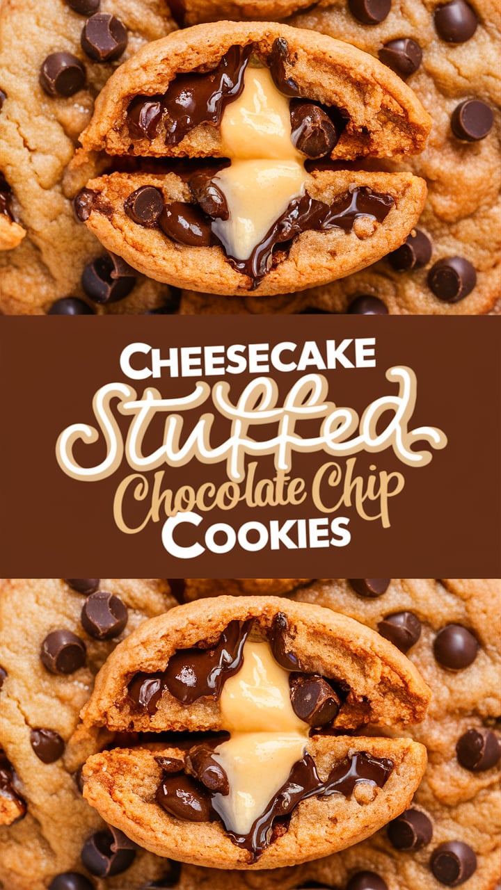 Imagine biting into a warm, gooey chocolate chip cookie only to discover a creamy, tangy cheesecake center hidden inside. That’s exactly what you get with Cheesecake Stuffed Chocolate Chip Cookies—a perfect fusion of two desserts everyone loves. These bakery-style cookies are indulgent, soft on the outside, and filled with a luscious cheesecake surprise on the inside.